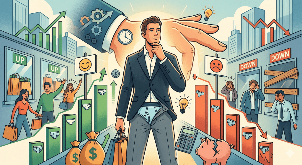 - Resesyon Öncesi (Erken Uyarı): Ekonomi henüz canlı görünse de harcanabilir gelir azalmaya başladığında, erkekler fark edilmeyecek ilk tasarruf kalemi olarak iç çamaşırı alımını durdurur. Satışlardaki ani ve açıklanamayan bir yavaşlama, ekonomik durgunluğun en erken habercisidir.